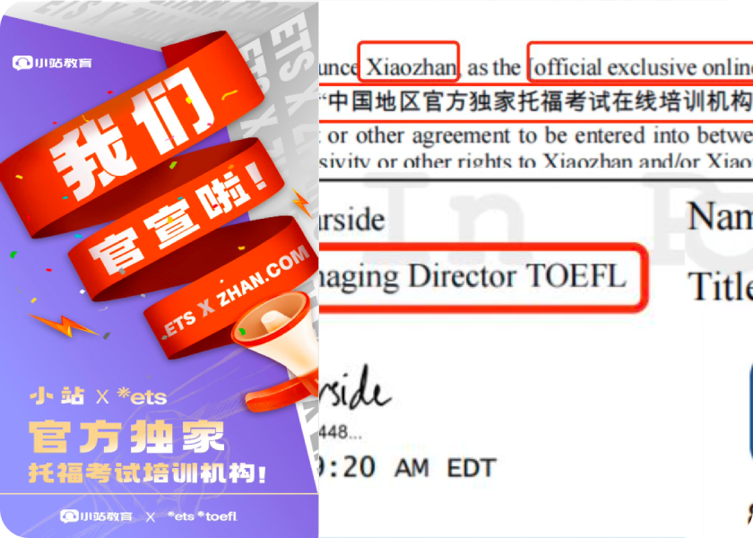 小站教育正式成立于2011年,带着创立公司时“希望让留学备考生少走弯路,快速通过考试申请梦校”的想法,已帮助千万学员顺利出国留学。成为ETS官方战略合作伙伴、雅思官方白金级合作伙伴。已建成“一站式留学平台”,为备考生打造一个完整的留学生态圈服务,包括语言培训、留学申请、国际课程和背景提升等。
